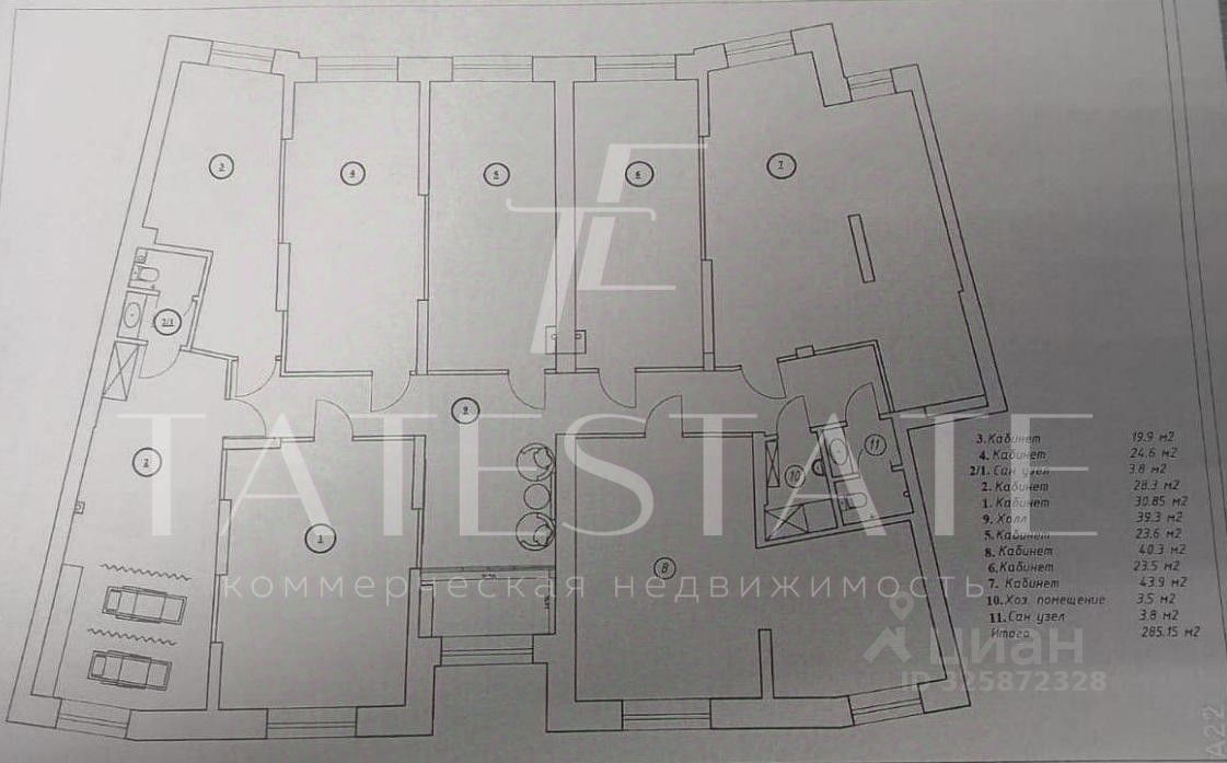 Планировка кабинетная., 8 кабинетов, в каждом кабинете большое окно и мокрая точка.