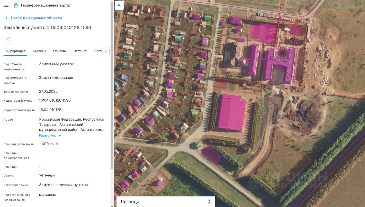 Земельный участок, категория земель: земли населенных пунктов, разрешенное использование: магазины, общая площадь 1000 кв.м., кадастровый номер 16:04:010128:1596