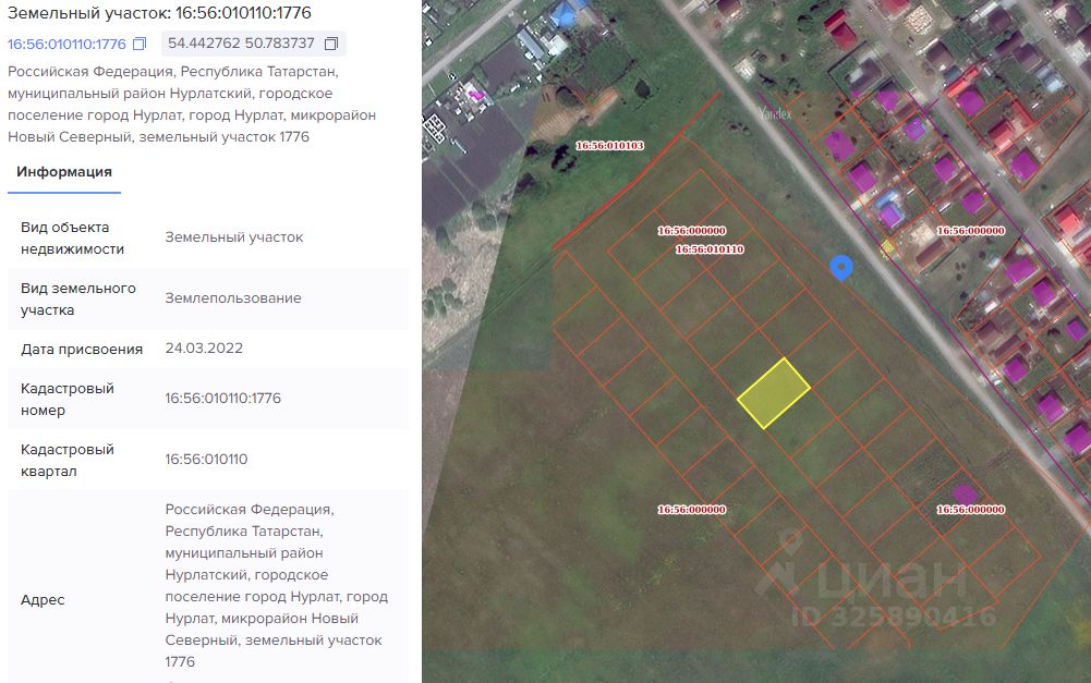 Земельный участок из земель населенных пунктов с кадастровым номером 16:56:010110:1776 площадью 1000 кв.м., расположенного по адресу: Российская Федерация, Республика Татарстан, муниципальный район Нурлатский, городское поселение город Нурлат, город Нурлат, микрорайон Новый Северный, земельный участок 1776, с разрешенным использованием жилая застройка, в аренду.