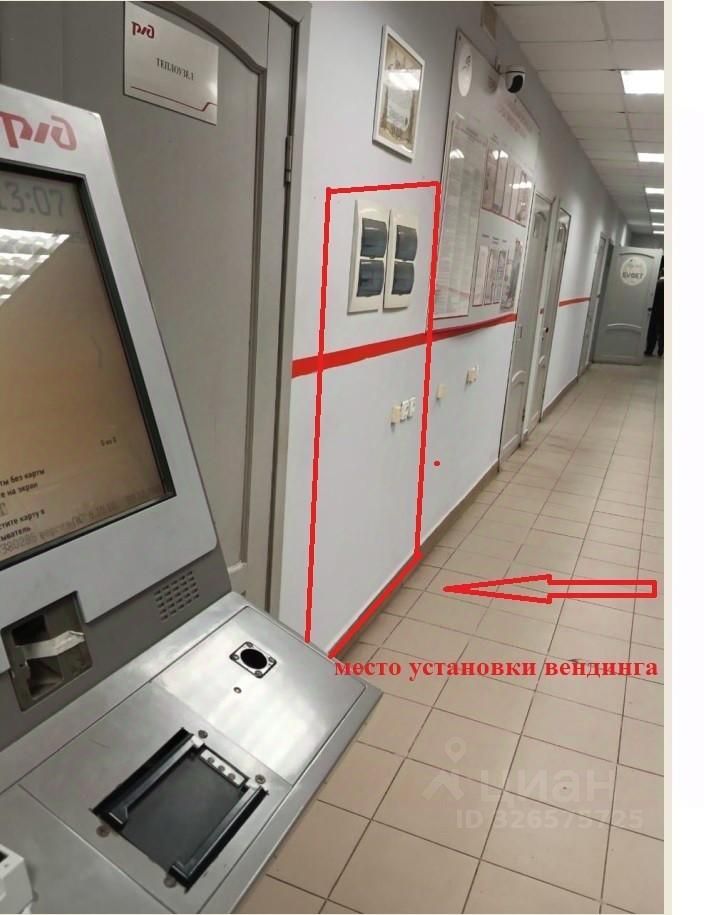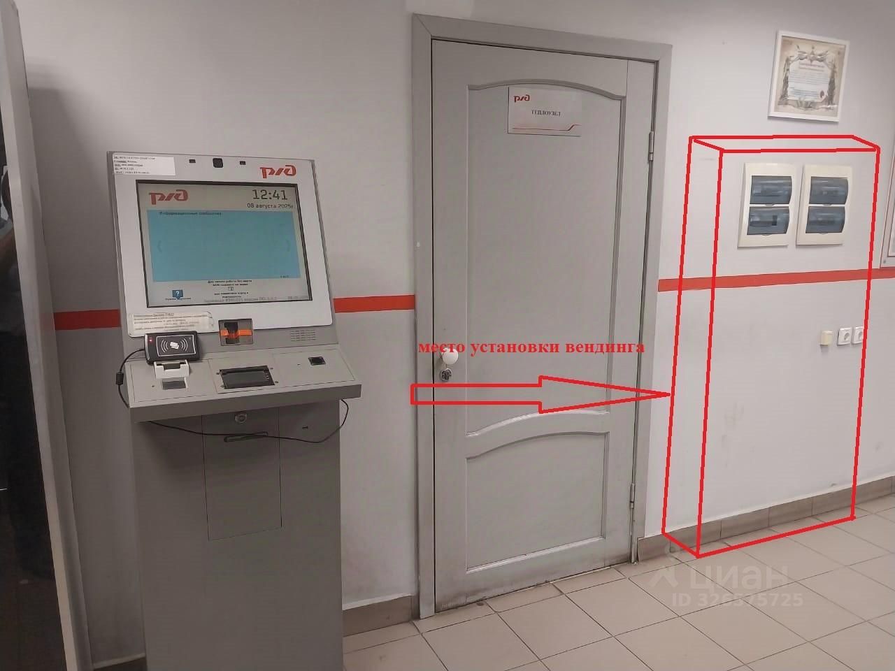 Помещение расположено на первом этаже Административного здания локомотивного депо Казань, подходит для размещения вендингового аппарата. Состояние объекта удовлетворительное, ремонт не требуется. Инженерные коммуникации: отопление, электроэнергия, центральный водопровод и канализация, пожарная сигнализация. Место для торговли обеспечено подключением к точке электросети. Высокий ежедневный клиентский трафик, доступ на территорию 12/7.