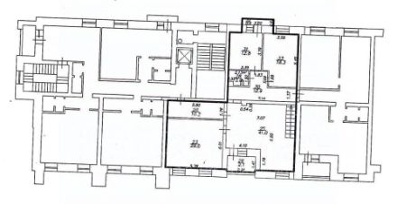 Офис состоит из большого холла, 3 кабинеток,есть технические помещения. (Небольшая обеденная зона, сан узел, два балкона)