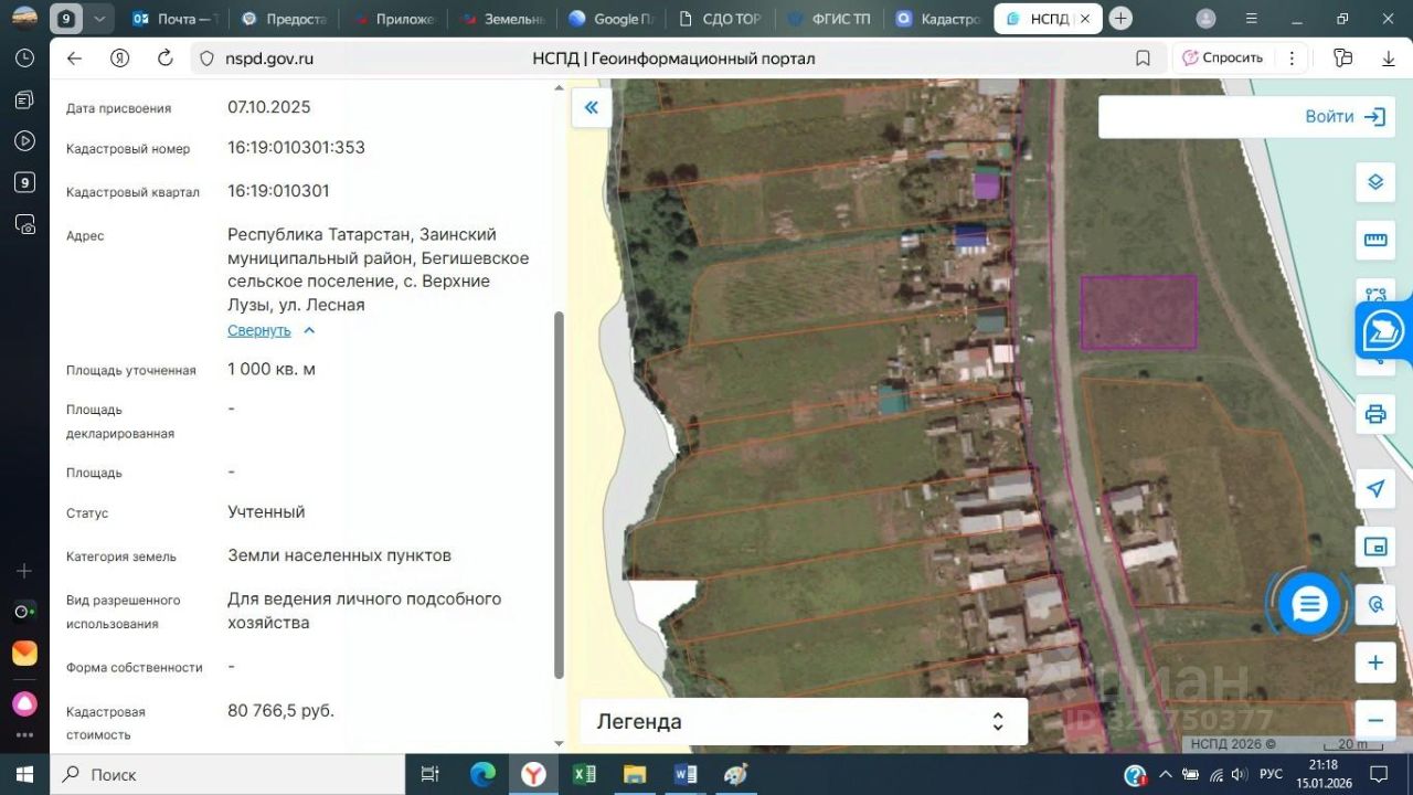 Земельный участок, категория земель: земли населенных пунктов, разрешенное использование: для ведения личного подсобного хозяйства, общая площадь 1000 кв.м., кадастровый номер 16:19:010301:353, расположенный по адресу: Республика Татарстан, Заинский муниципальный район, Бегишевское сельское поселение, с. Верхние Лузы, ул. Лесная.