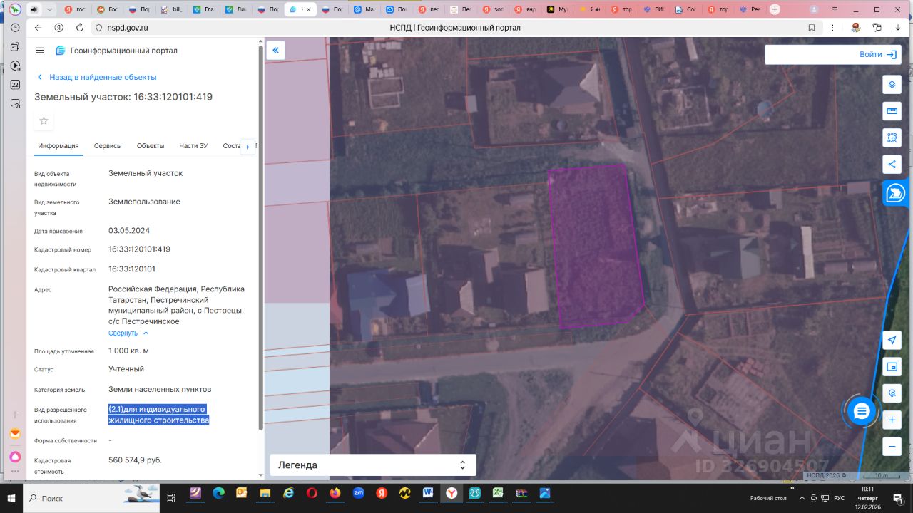 Лот 5. Земельный участок с кадастровым номером 16:33:120101:419 общей площадью 1000 кв.м., расположенный по адресу: Российская Федерация, Республика Татарстан, Пестречинский муниципальный район, с Пестрецы, с/с Пестречинское. Категория Земли населенных пунктов/ разрешенное использование (2.1)для индивидуального жилищного строительства. Вид права аренда. Начальная цена/годовая арендная плата 380900,00 рублей.