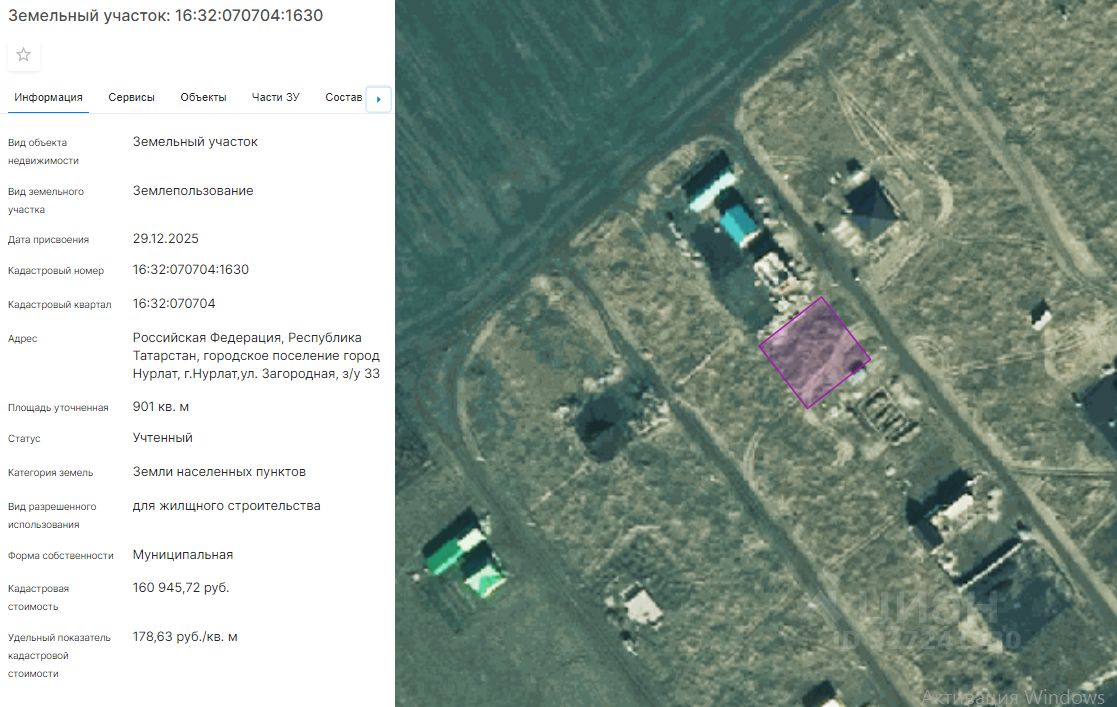 Земельный участок из земель населенных пунктов с кадастровым номером 16:32:070704:1630 площадью 901 кв.м., расположенного по адресу: Российская Федерация, Республика Татарстан, городское поселение город Нурлат, г. Нурлат, ул. Загородная, з/у 33, с разрешенным использованием для жилищного строительства, в аренду.