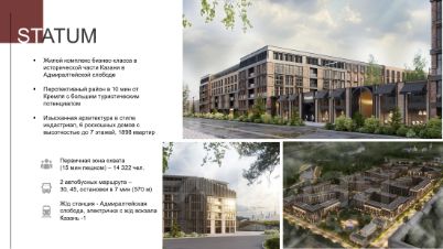 - отличная транспортная доступность: всего в 10 минутах от центра города! Активная реновация делает Адмиралтейскую слободу одной из самых привлекательных локаций в городе для жизни и ведения бизнеса.