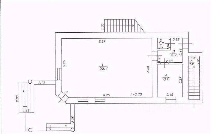 На второй этаж ведет лестница сбоку здания.