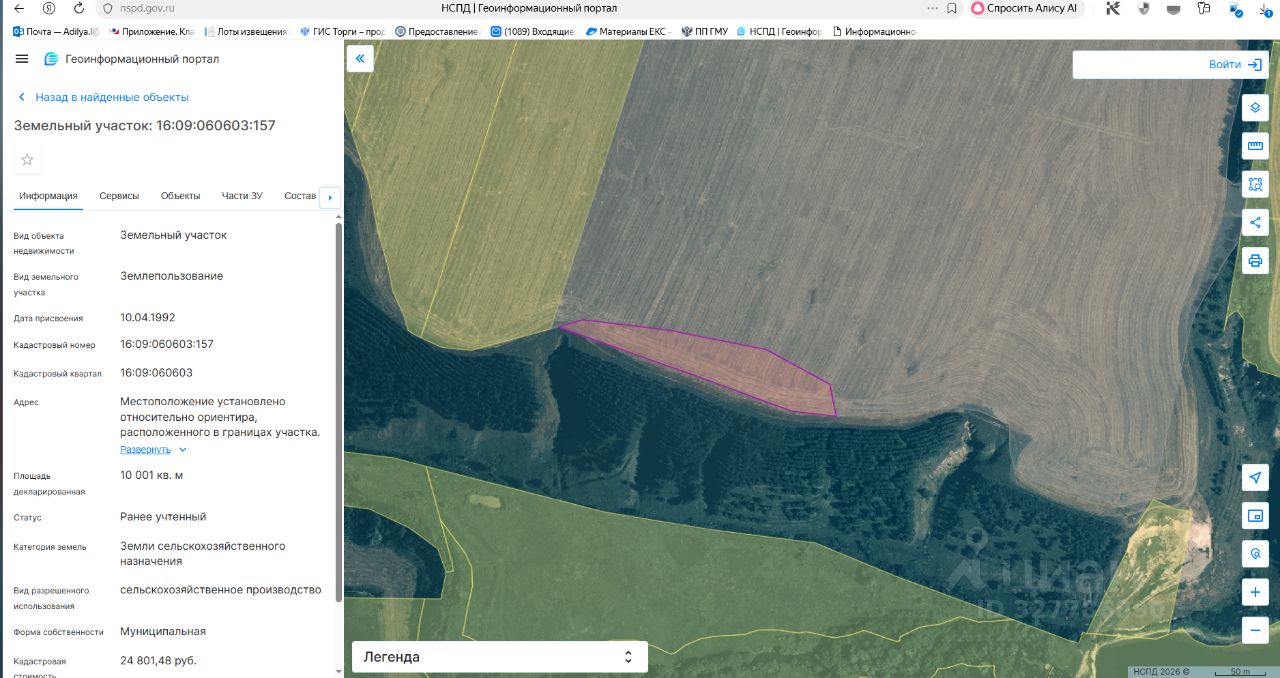 Земельный участок, категория земель: земли сельскохозяйственного назначения, разрешенное использование: сельскохозяйственное производство, общая площадь 10001 кв.м, кадастровый номер 16:09:060603:157, расположенный по адресу: Российская Федерация, Республика Татарстан, Арский муниципальный район, Старокырлайское сельское поселение, в границах землепользования КП Игенче