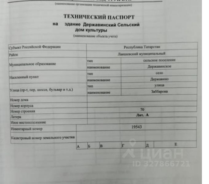 нежилое помещение 1 этажа ( 13,15,16,17,18), расположенное по адресу: РТ, Лаишевский муниципальный район, Державинское сельское поселение, с. Державино, ул. Заббарова, д. 70, площадью 34,4 кв.м.