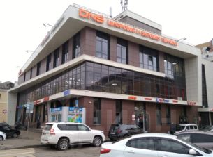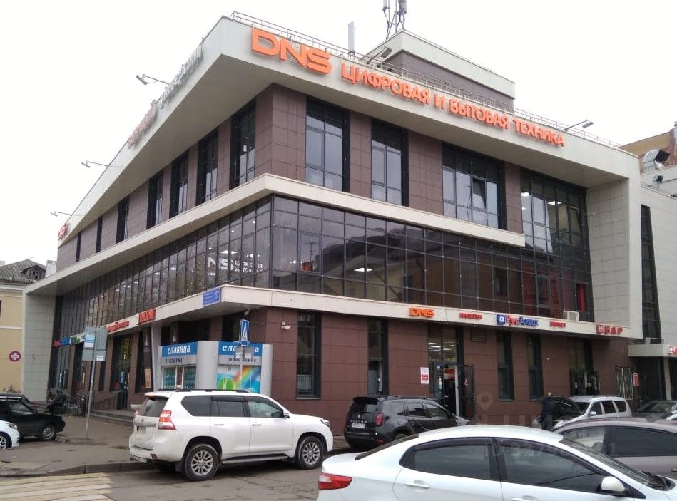 В здании расположены: аптека Саулык, магазины ДНС, Верный, РусАлко, Автозапчасти, Парикмахерская, Пекарня, Фикс Прайс и Торговая Галерея на цокольном этаже.