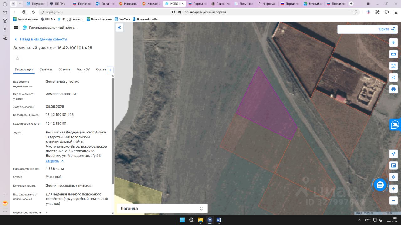 Земельный участок с кадастровым номером 16:42:190101:425 площадь 1338 по адресу Российская Федерация, Республика Татарстан, Чистопольский муниципальный район, Чистопольско-Высельское сельское поселение, с. Чистопольские Выселки, ул. Молодежная, з/у 53