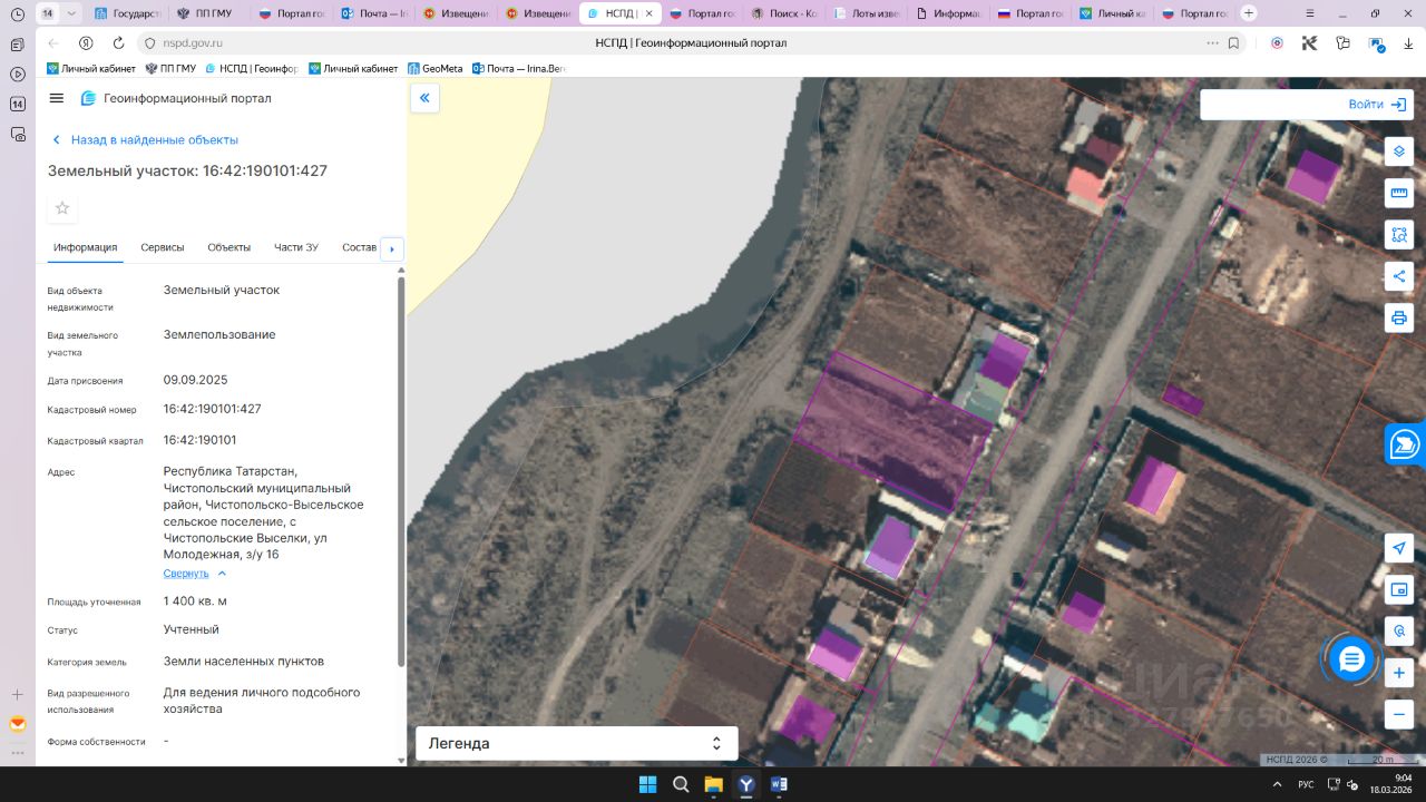 Земельный участок с кадастровым номером 16:42:190101:427 площадь 1400 по адресу Республика Татарстан, Чистопольский муниципальный район, Чистопольско-Высельское сельское поселение, с Чистопольские Выселки, ул Молодежная, з/у 16