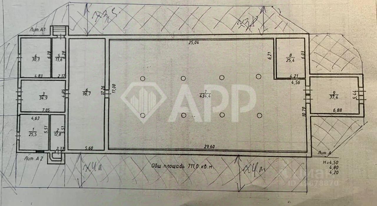 Вода/канализация, ворота с двух сторон здания (3,1х3,3 м).