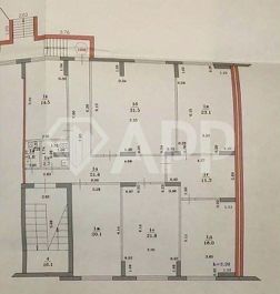 Гибкая планировка: сейчас выполнена кабинетная нарезка — 6 отдельных кабинетов с окнами.