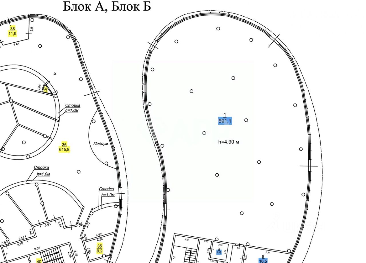 - Высота потолков 5 м