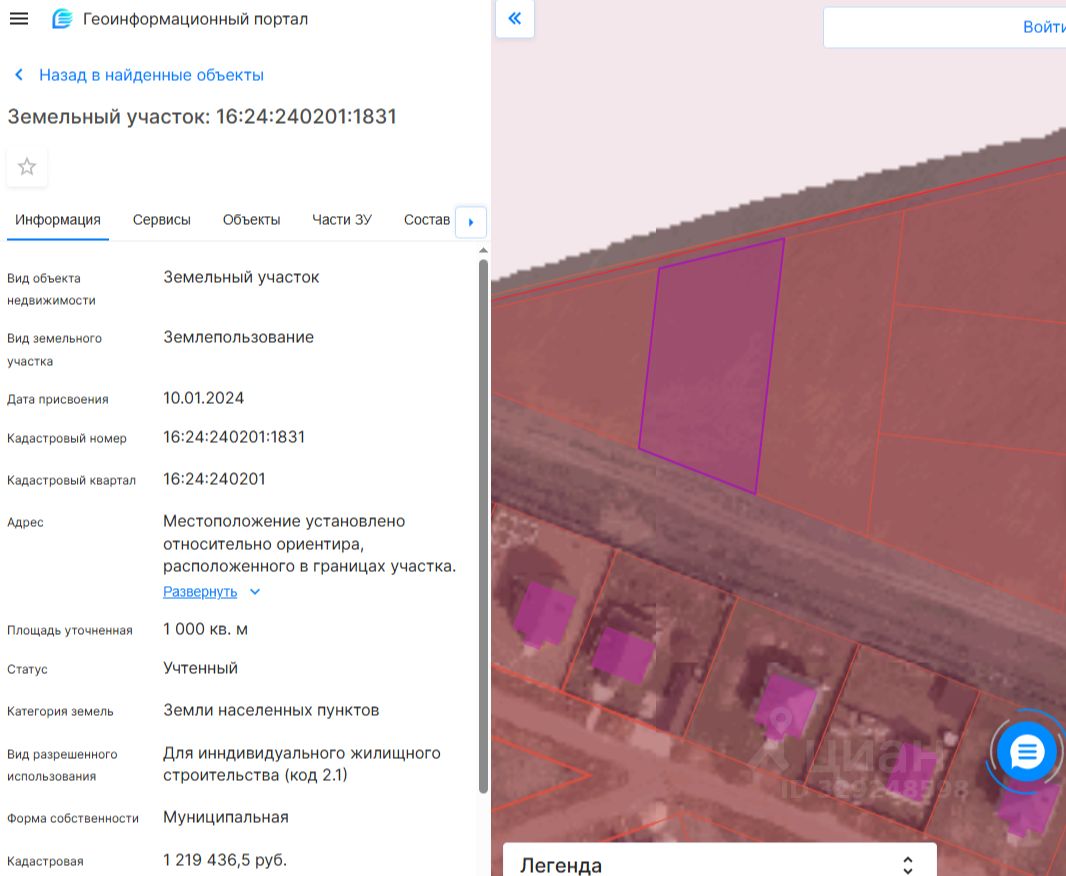 Земельный участок с кадастровым номером 16:24:240201:1831, вид разрешенного использования для индивидуального жилищного строительства (код 2.1) из земель населенных пунктов, общей площадью 1000 кв.м., расположенный по адресу: Республика Татарстан, Лаишевский муниципальный район, Сокуровское сельское поселение, д. Обухово