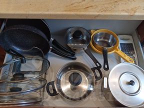 В квартире имеется всё необходимое для комфортного проживания, а именно: двухспальная кровать, два раскладных дивана, шкаф-купе, гардеробная, раскладной стол, стулья, кухонный гарнитур, холодильник, микроволновка, эл. чайник, фильтр для воды, вытяжка, газовая плита, духовка, вся необходимая посуда, ЖК телевизор, Wi-Fi, утюг, гладильная доска, фен, стиральная машина, кондиционер, водонагреватель. Также предоставляется чистое выглаженное постельное белье, полотенце и моющие средства.