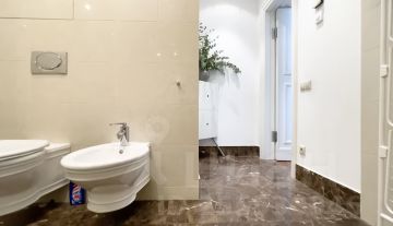 Большой санузел с душем и ванной (сделан за счёт перепланировки)