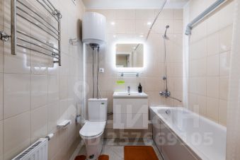 светлую ванную комнату, в которой есть всё для поддержания личной гигиены