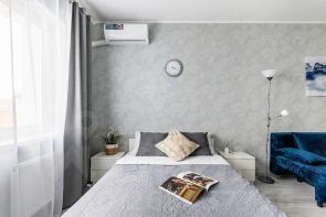 *в спальне: Двухспальная кровать и раскладной диван, туалетный столик, торшер