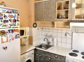 В квартире: прихожая соединена с кухней, и имеется 2 раздельные комнаты, окна выходят во двор, квартира уютная и очень теплая,комфортная,транспортная развязка близкая.