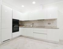 Стильный кухонный гарнитур, оснащён варочной панелью, вытяжкой, духовым шкафом, микроволновой печью, чайником и холодильником, а также имеется весьма вместительный шкаф купе