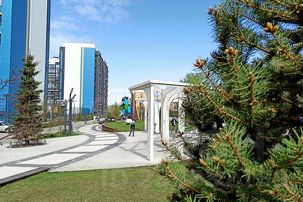 Особенностью ЖК является прогулочный пешеходный бульвар через весь комплекс с зонами отдыха, фонтанами и арт-объектами.