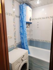 Оснащена всей необходимой техникой: холодильник, электродуховка, газовая плита с новой вытяжкой, 2 водонагревателя (1 на кухне под мойкой, 2-ой в ванной), 2 кондиционера (1 в гостиной, 2-ой в спальне), телевизор, стиральная машина,