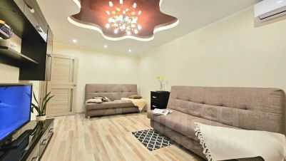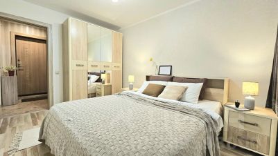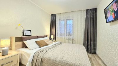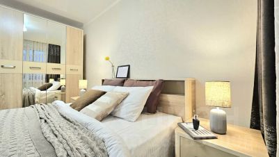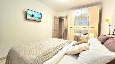 Квартира отлично подходит для комфортного проживания до 6 человек: два двухместных дивана и одна двуспальная кровать. Просторные комнаты создают атмосферу домашнего уюта.