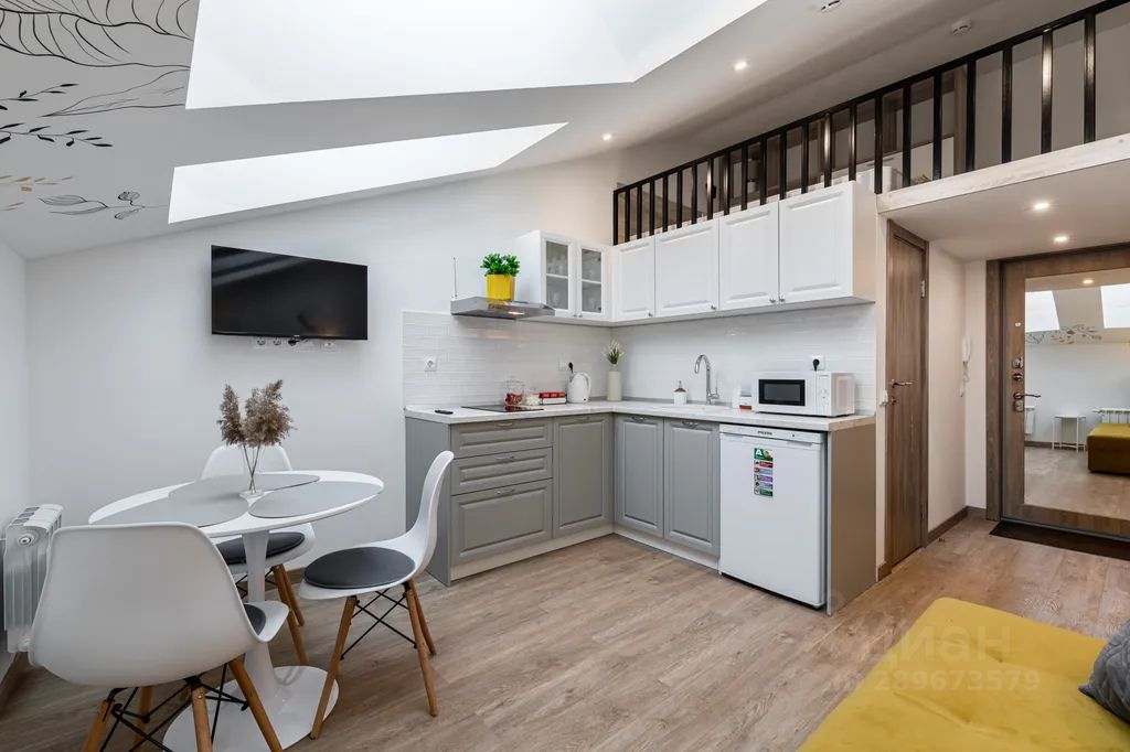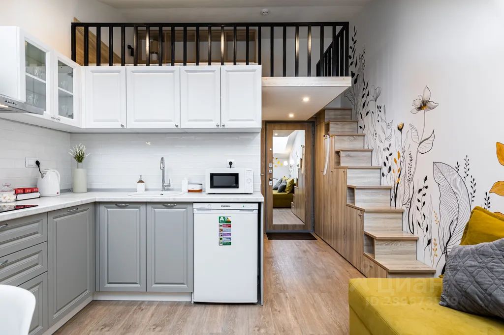 1 уровень: кухня-гостиная с удобным диваном - 180*200 и Smart TV, дизайнерской мебелью, всей необходимой техникой (СВЧ, морозильная камера, варочная панель и др.), ванная комната со стиральной машиной и многое другое.