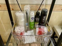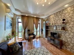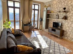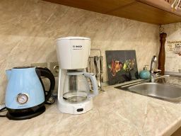Гостям предоставляется: парковочное место (одно) во дворе дома (за дополнительную плату), Wi-Fi, полотенца, постельное бельё, фен, чай, кофе, шампунь, гель для душа, зубная паста, стиральная машина, ТВ, влажный клининг после каждого гостя, двуспальная кровать, шкаф в холле, рабочий стол, телевизор, раскладной диван. На кухне есть духовой шкаф, газовая плита, СВЧ, детский стульчик для кормления, пароварка, электрический чайник, капельная кофеварка, холодильник, соковыжималка для цитрусовых. Общие принадлежности: утюг, гладильная доска, пылесос, фен.