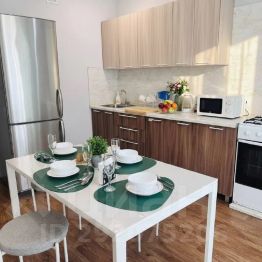 В квартире имеется вся необходимая посуда для приготовления и приёма пищи. Душевая кабина, стиральная машина. Каждому гостю предоставляется комплект полотенец. На постели чистые комплекты постельного белья.