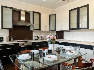 Кухня с необходимой техникой и посудой, индукционная плита, посудомоечная машина