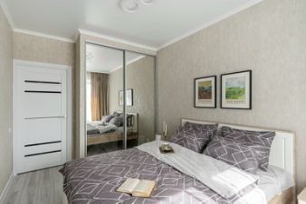 Апартаменты двухкомнатные, имеют 6 спальных мест: двуспальная кровать с матpacом и двухместный раскладнoй дивaн в одной комнате и ещё одна двуспальная кровать в другой комнате.