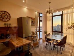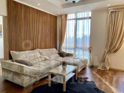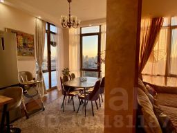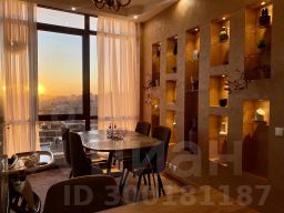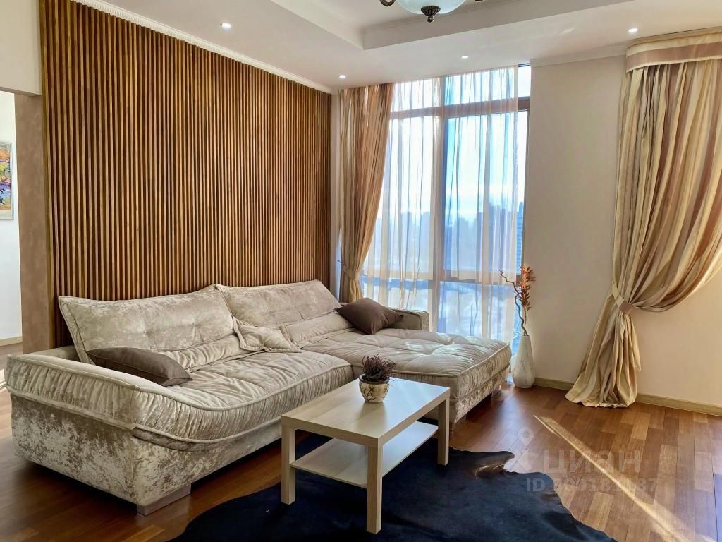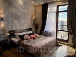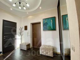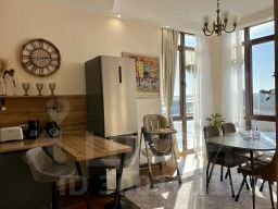 Оснащение в жилых зонах: двуспальная кровать в спальне с балконом, диван в гостиной, шкафы-купе, телевизор, два санузла, душ в ванной комнате, бесплатный Wi-Fi, постельное бельё, полотенца, утюг, гладильная доска, пылесос, фен, детская кроватка-манеж и стул для кормления.