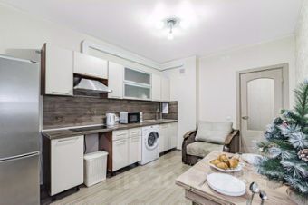 Всего 5 раздельных спальных мест: зал — диван-кровать 2-х спальный, диван-кровать 2-х спальный, спальня — диван-кровать 2-х спальный и диван-кровать односпальный, кухня — диван-кровать односпальный. К услугам гостей индукционная плита, холодильник, стиральная машина, водонагреватель, туалетные принадлежности, зубные щётки, одноразовые тапочки, санузел раздельный с мини раковиной, постельные принадлежности. Телевизор с 200 программами ТВ, Wi-Fi.