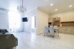 Панорамная лоджия, кондиционер, Smart TV, WiFi + кабельное TV, посуда, квартира упакована от "А" до "Я", можем обсудить необходимые условия;