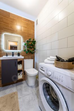 Ванная: стиральная машина, фен, гель для душа и шампунь