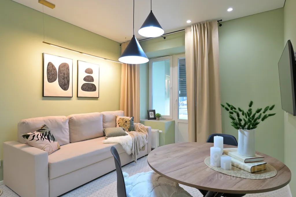 2 комнаты: уютная изолированная спальня и просторная гостиная-кухня с мягким, очень комфортным диваном.