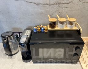 — Бытовая техника (чайник, микроволновка, холодильник, кофемашина, , фен, утюг, гладильная доска, стиральная машинка, телевизор, водонагреватель, интернет).