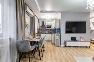 ДЛЯ ВАС: - Домашний комфорт, тепло и уют;- Квартира оборудована всей необходимой бытовой техникой; - Спальные места двуспальная;- телевизор;- при заселении предоставляется комплект постельного белья, тип размещения DBL (2х местный комплект-пододеяльник, простыня и 2 наволочки), а также свежие полотенца, душевые принадлежности ( шампунь и гель для душа). - Также для Вашего удобства мы предоставляем: бытовая техника, чайник, телевизор, посуда, столовые приборы.