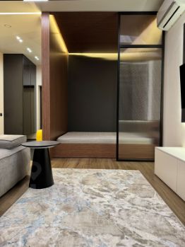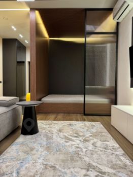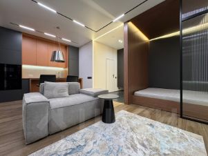 Квартира выполнена с дизайнерским ремонтом и полностью готова для комфортного проживания. Просторная студия меблирована: в комнате и на кухне вам будет удобно жить и принимать гостей. Из техники есть все необходимое: кондиционер, холодильник, посудомоечная машина, стиральная машина и телевизор. Санузел совмещенный, оснащен ванной. Окна выходят на улицу, что обеспечивает хорошее естественное освещение.