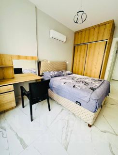 В квартире выполнен дизайнерский ремонт. В комнатах и на кухне есть мебель, что позволяет сразу заселиться и наслаждаться комфортом. К вашим услугам современная техника: кондиционер, холодильник, посудомоечная машина, телевизор и стиральная машина. Санузел совмещённый, оборудован душевой кабиной. Из окон открывается вид во двор, а на лоджии можно устроить зону отдыха.