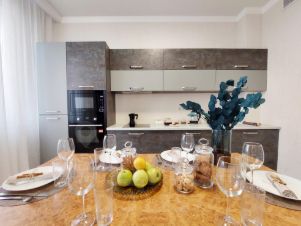 • Функциональная кухня с электрической плитой и всей необходимой посудой