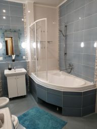 Для удобства гостей имеется: двуспальная кровать, раскладной диван, раскладная односпальная кровать, кондиционер, ЖК телевизор, холодильник, посудомоечная машина, электрический чайник, посуда и столовые приборы, сковороды и кастрюли, стиральная машинка, микроволновая печь, сушилка для белья, утюг, гладильная доска, пылесос, кабельное телевидение, бесплатный высокоскоростной WI-FI. В стоимость квартиры входит: чистое, выглаженное, свежее постельное бельё; душевой набор и тапочки; комплект полотенец для каждого гостя; чай, кофе, конфеты и прочие мелочи.