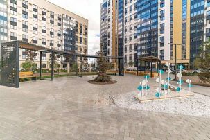-Современная детская площадка во дворе ;