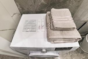 -Утюг, фен, гладильная доска и сушилка;