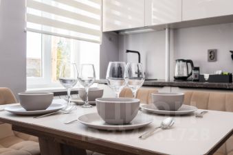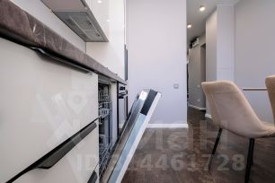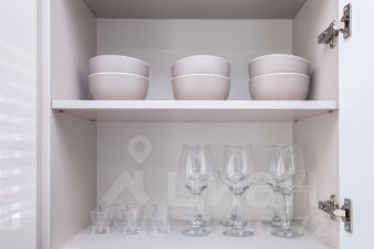 Кухня укомплектована: посудомоечная машина, варочная поверхность, духовой шкаф, СВЧ печь, холодильник, система очистки воды, чайник, посуда, столовые приборы.