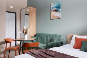 Уютная студия с дизайнерским ремонтом, включает в себя все необходимое для комфортного проживания