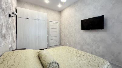 Квартира выполнена в дизайнерском стиле, что придаёт ей особую атмосферу уюта и комфорта. Просторная кухня площадью 18 кв. м оснащена всей необходимой мебелью и техникой, включая холодильник и телевизор. В комнате также есть мебель, что позволяет сразу же переехать и наслаждаться жизнью в новом доме. Ванная комната оборудована душевой кабиной, а наличие стиральной машины избавляет от забот с поиском прачечной.