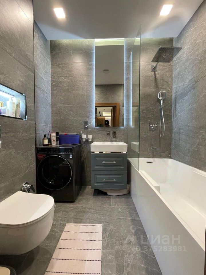 Квартира оформлена в дизайнерском стиле и полностью готова для комфортного проживания. В квартире есть мебель как на кухне, так и в комнатах. В санузле установлена ванна. Для удобства жильцов предусмотрена современная техника: кондиционер, холодильник, посудомоечная и стиральная машины, а также телевизор.